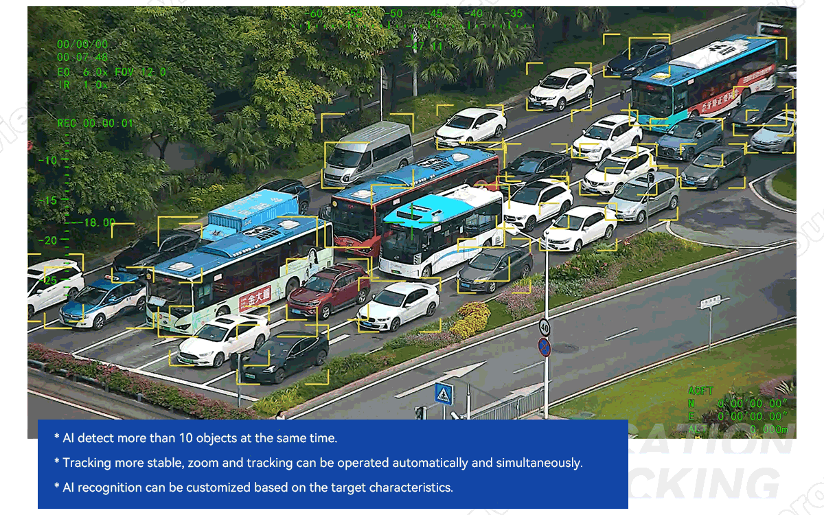 MA10 pro is a Single-sensor gimbal camera featuring lightweight design, small volume and compact structure, which integrates a 10x optical zoom camera and tracking function. It s with 3-axis high-precision aluminum alloy gimbal which has advantages of anti-interference and better heat dissipation. It is integrated with AI object identification and tracking module, which can realize car and human autonomous recognition and automatic tracking. It widely used in UAV industries of inspection, surveillance, search and rescue and other industrial applications.