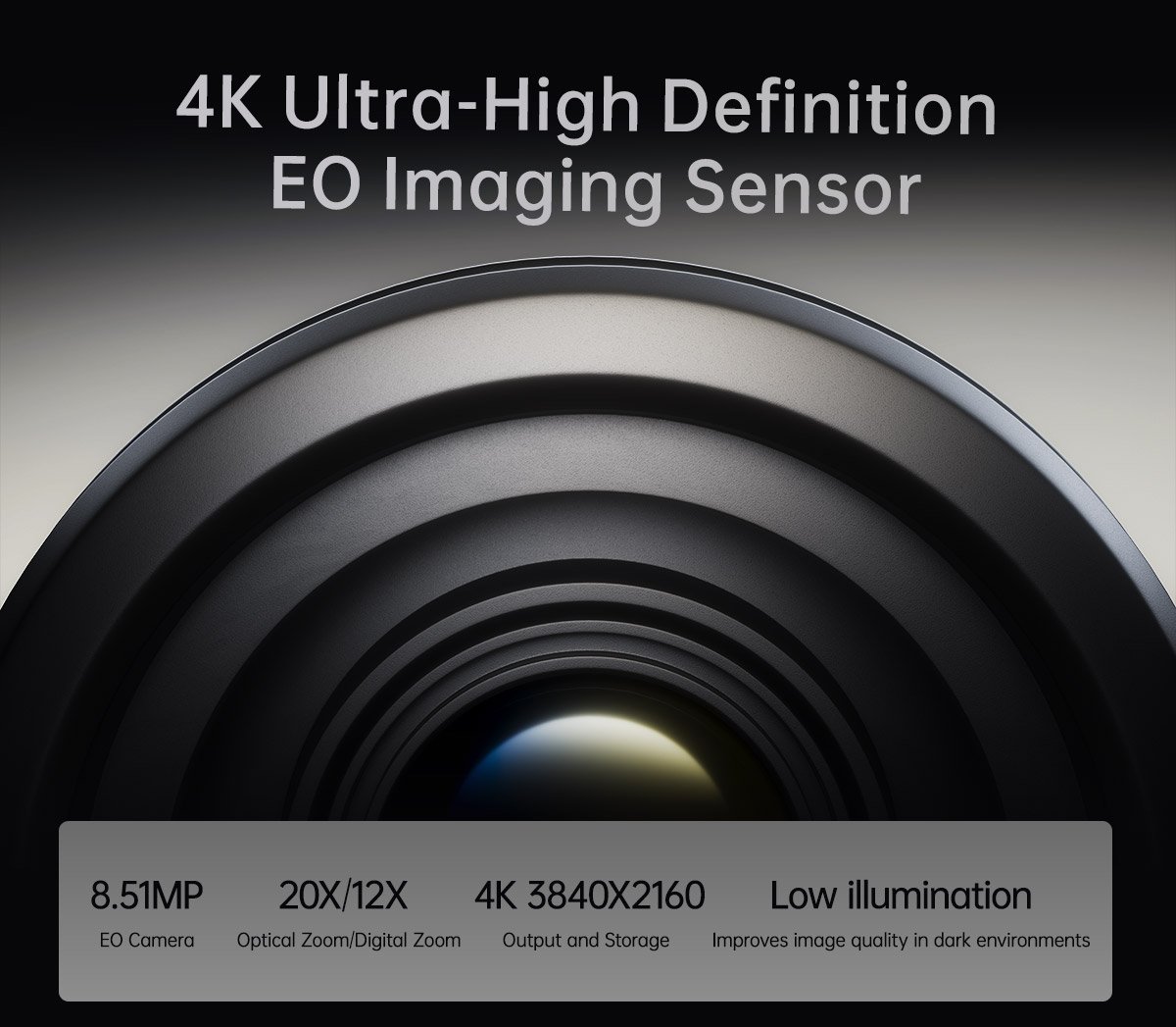 The MA20KT-19 is a 3-axis 4K Ultra-High Definition dual-sensor AI Object Tracking Gimbal Camera. It is equipped with multiple sensors: an 8.51MP imaging sensor with 20x optical zoom, and a 640 512 thermal imaging sensor with a 19mm focal length.