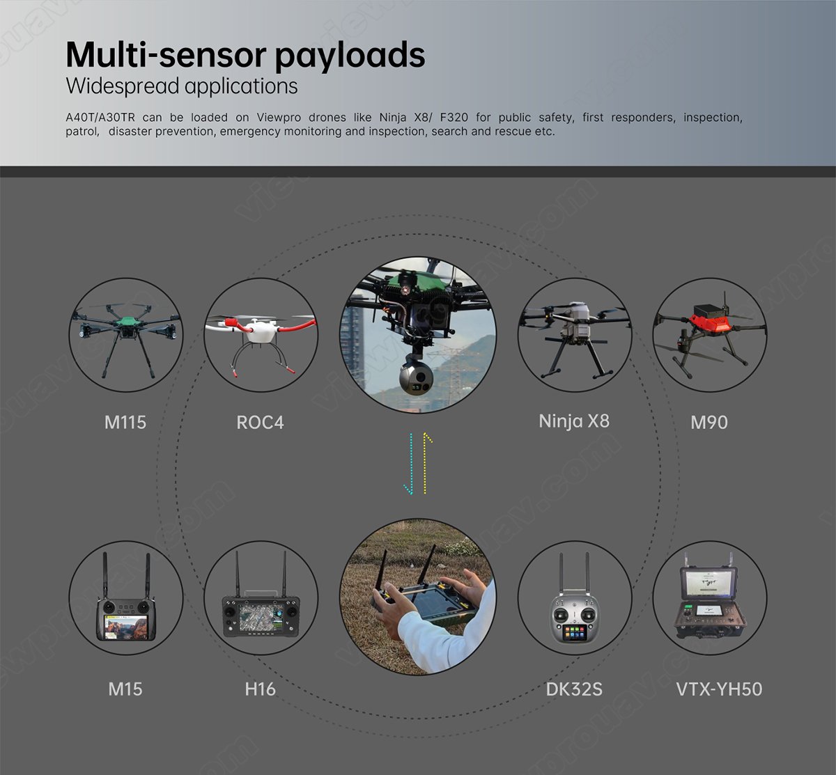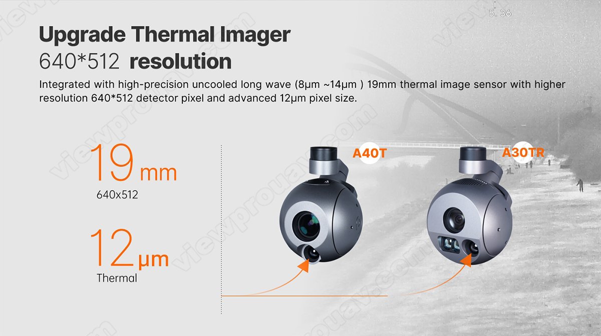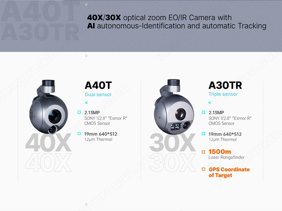 MA40T/A30TR are cost-effective dual-sensor gimbal camera with stable AI tracking function. A40T is 40x optical zoom and A30TR is 30x optical zoom with 19mm 640*512 12 m IR thermal camera. A30TR is with 1500m LRF. The high quality image and stable tracking function support the cameras can be applied to various applications, such as inspections, patrol, disaster prevention, emergency monitoring inspections, search and rescue, etc.
