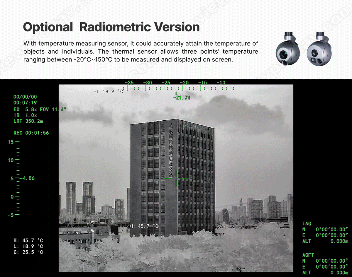 | Working mode | Uncooled VOx long wave (8 m~14 m) thermal imager |