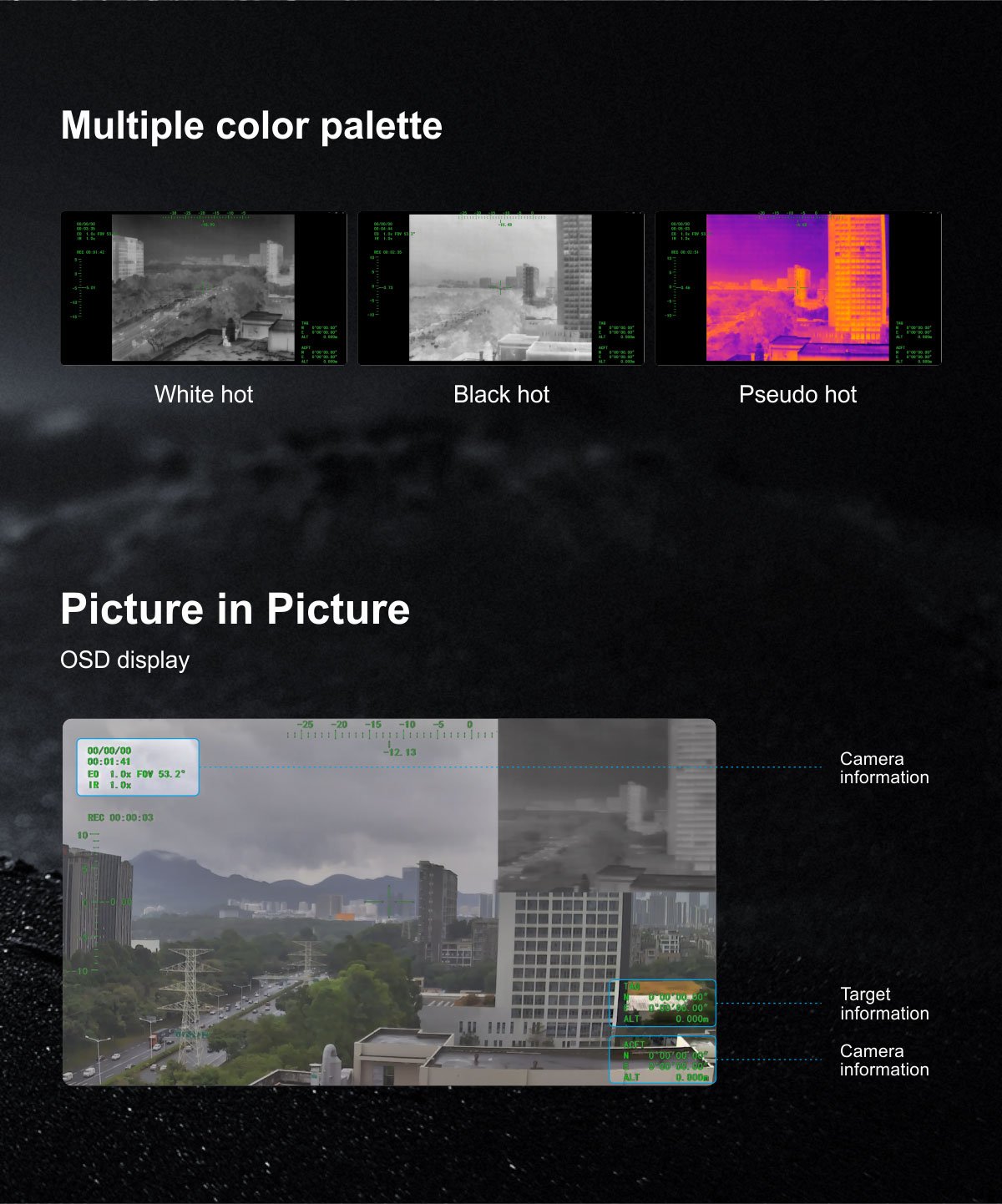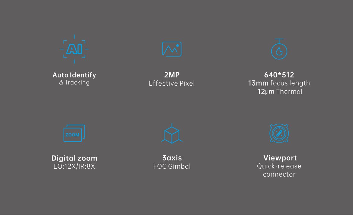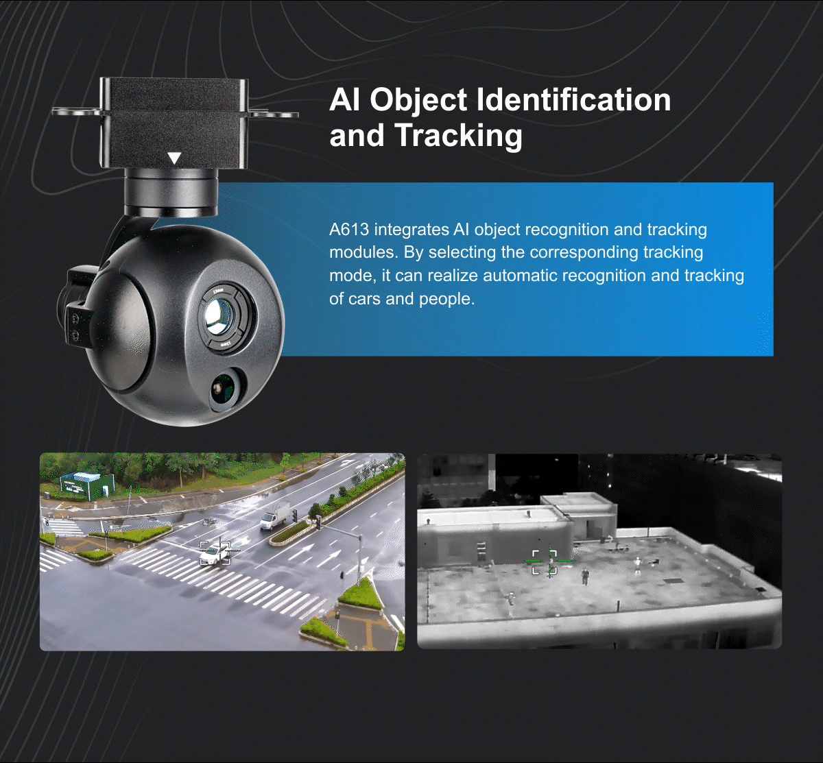 MA613 is a 3-axis gimbal camera integrated with both EO and IR sensors. The EO sensor delivers sharp, vivid color imagery, while the IR sensor provides thermal insights, making it ideal for surveillance, search and rescue, and security operations.