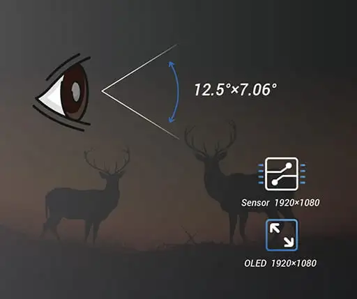 The 1920×1080@4μm sensor resolution comes with a 35mm lens creating a large field of view of 12.5°×7.06° while the 1920×1080 full HD OLED display ensures your viewing experience. Images are smoother and more detailed.