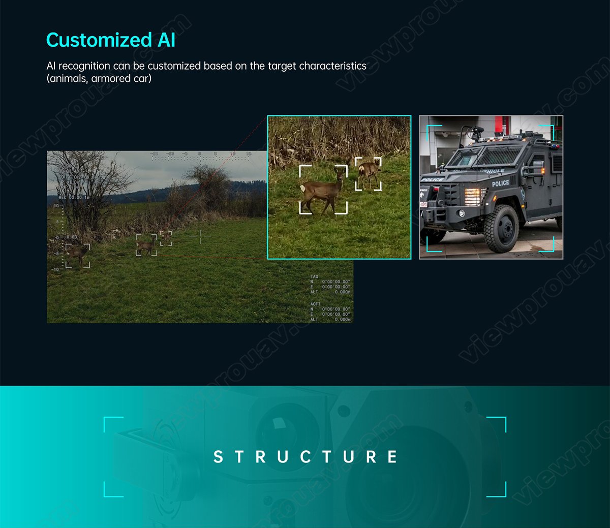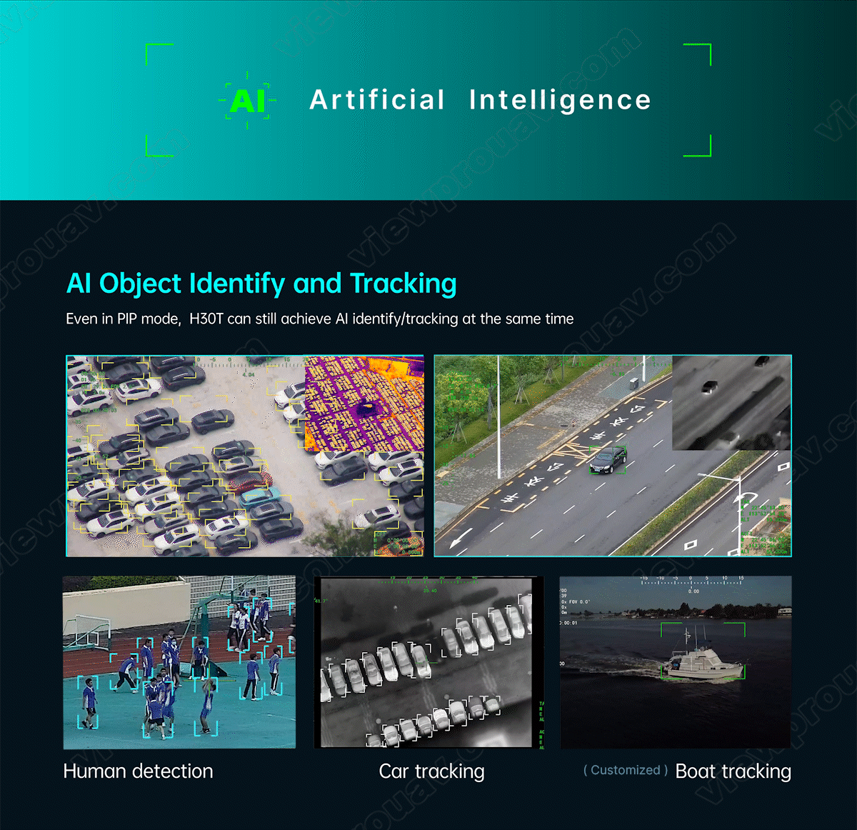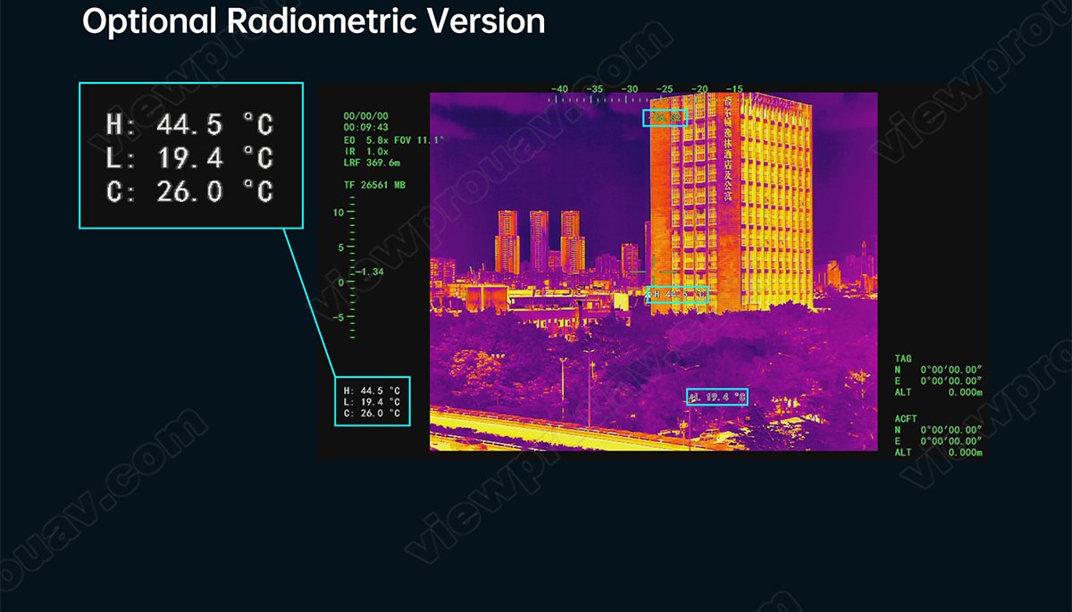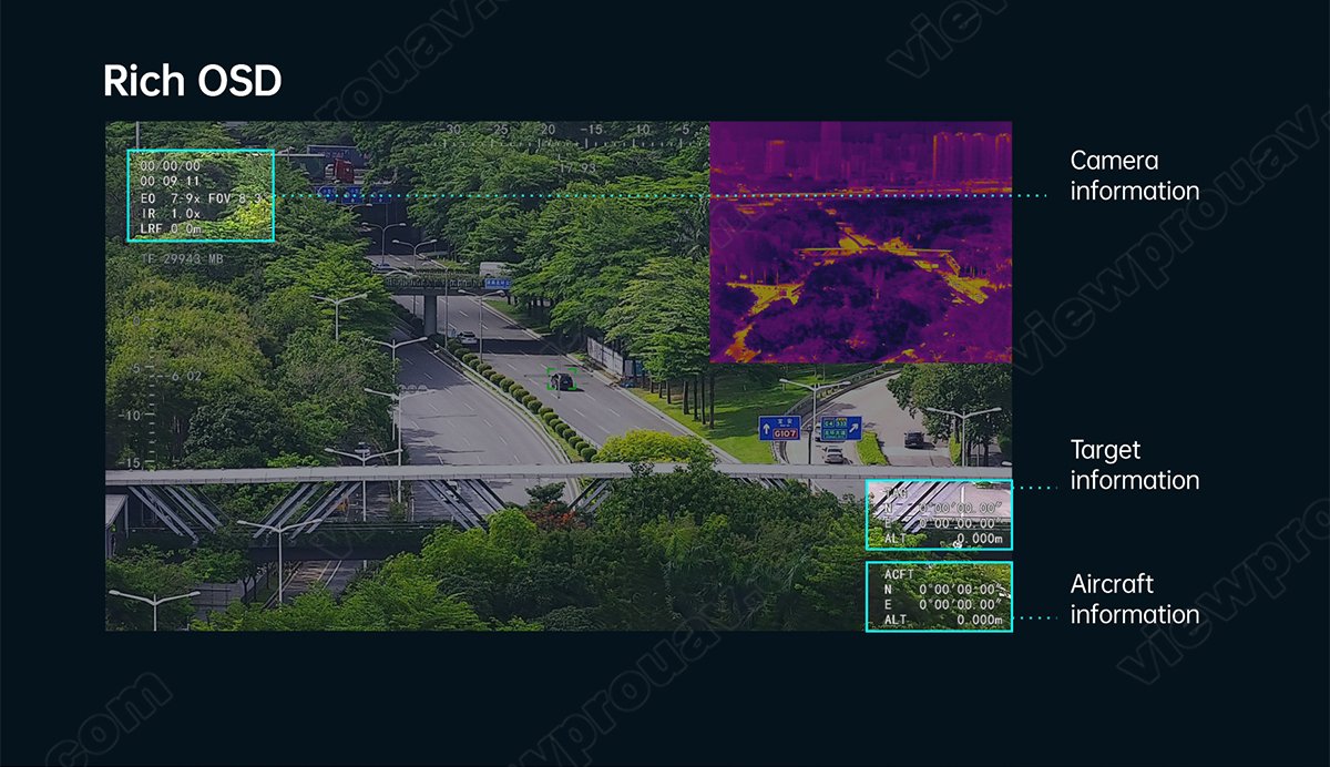 This Dark Knight Returns series H30T is amazing for the 30x SONY STARVIS CMOS sensor which is supporting starlight night vision and super image stabilization. Combined with Viewpro powerful AI algorithm, these payloads support human and car auto detection sensitively and stable AI tracking with 1000m LRF.