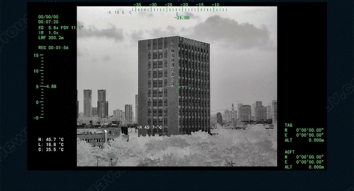| Working mode | Uncooled VOx long wave (8 m~14 m) thermal imager |