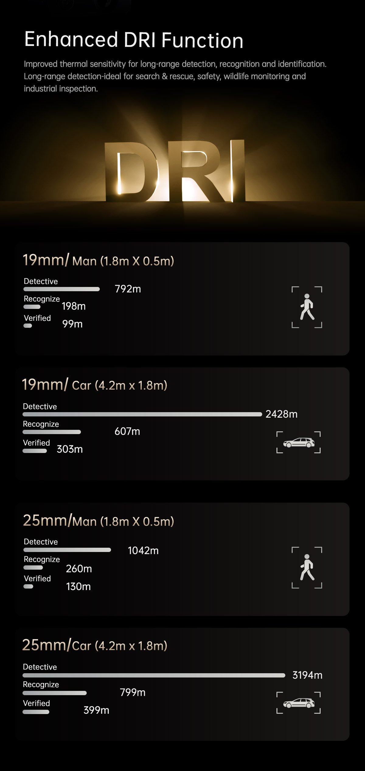 | Identification Distance (Man: 1.8 0.5m) | 130 meters |