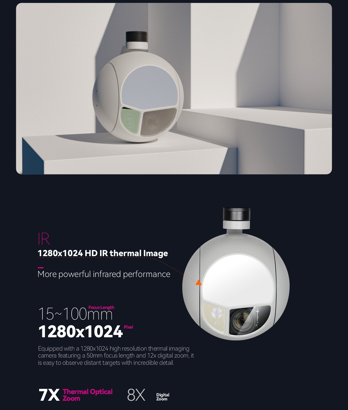 MQ30TIRM-15100 Triple Sensors 7X Optical Zoom 1280 IR Thermal STARVIS EO Gimbal Camera