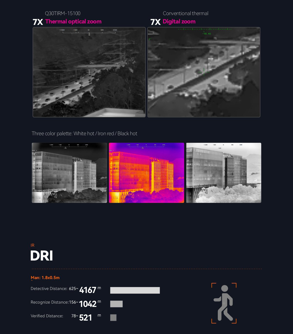 | 15~100mm Recognize Distance (Man: 1.8 0.5m) | 156~1042 meters |
