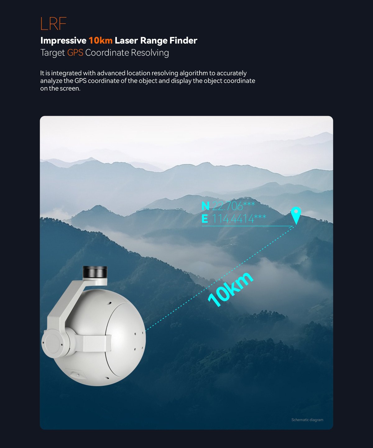 | Range | 10km for big target (eg. building) 6km for car (2.3m 2.3m) 2.5km for people (1.75m 0.75m)(Based on typical value: LOS visibiligy: 10km Diffuse reflection rate: 0.3 Humility: 80%) |
