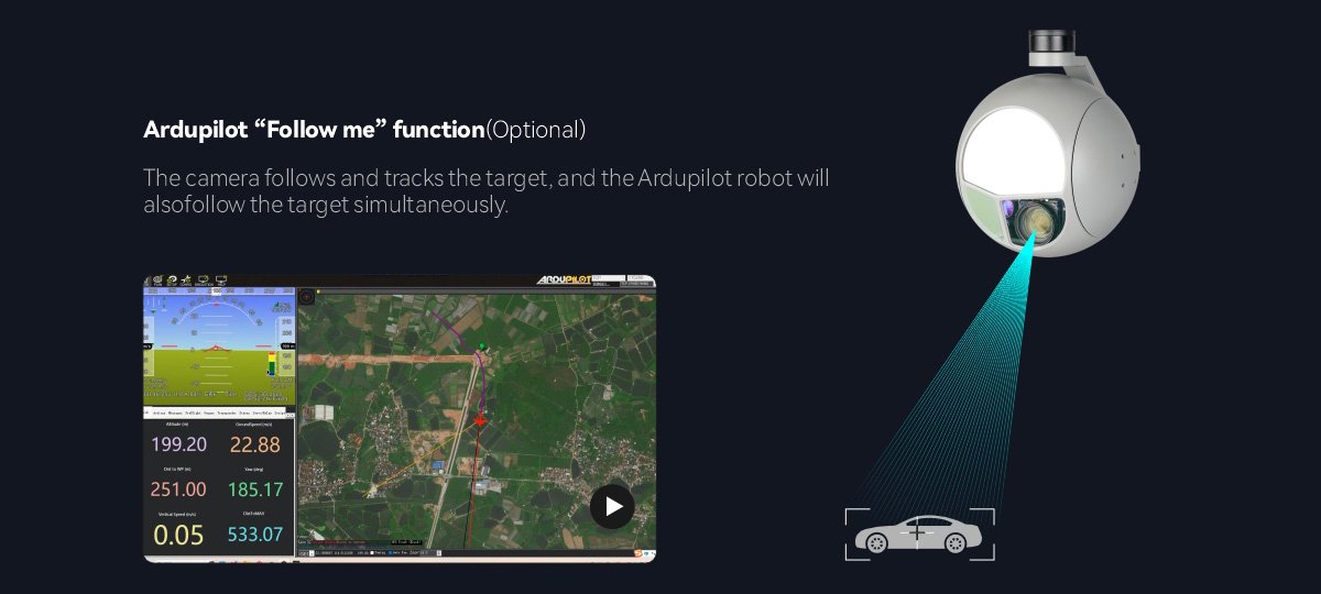 | ArduPilot / PX4 | Support(Mavlink protocol ) Optional: Support Ardupilot Follow me feature |