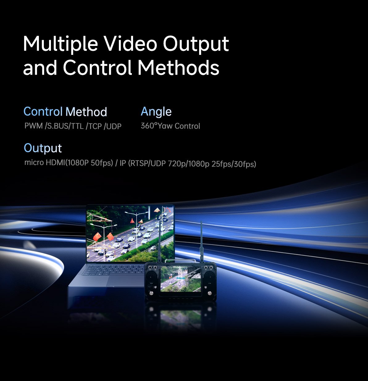 | Control method | PWM / TTL / S.BUS / TCP / UDP |