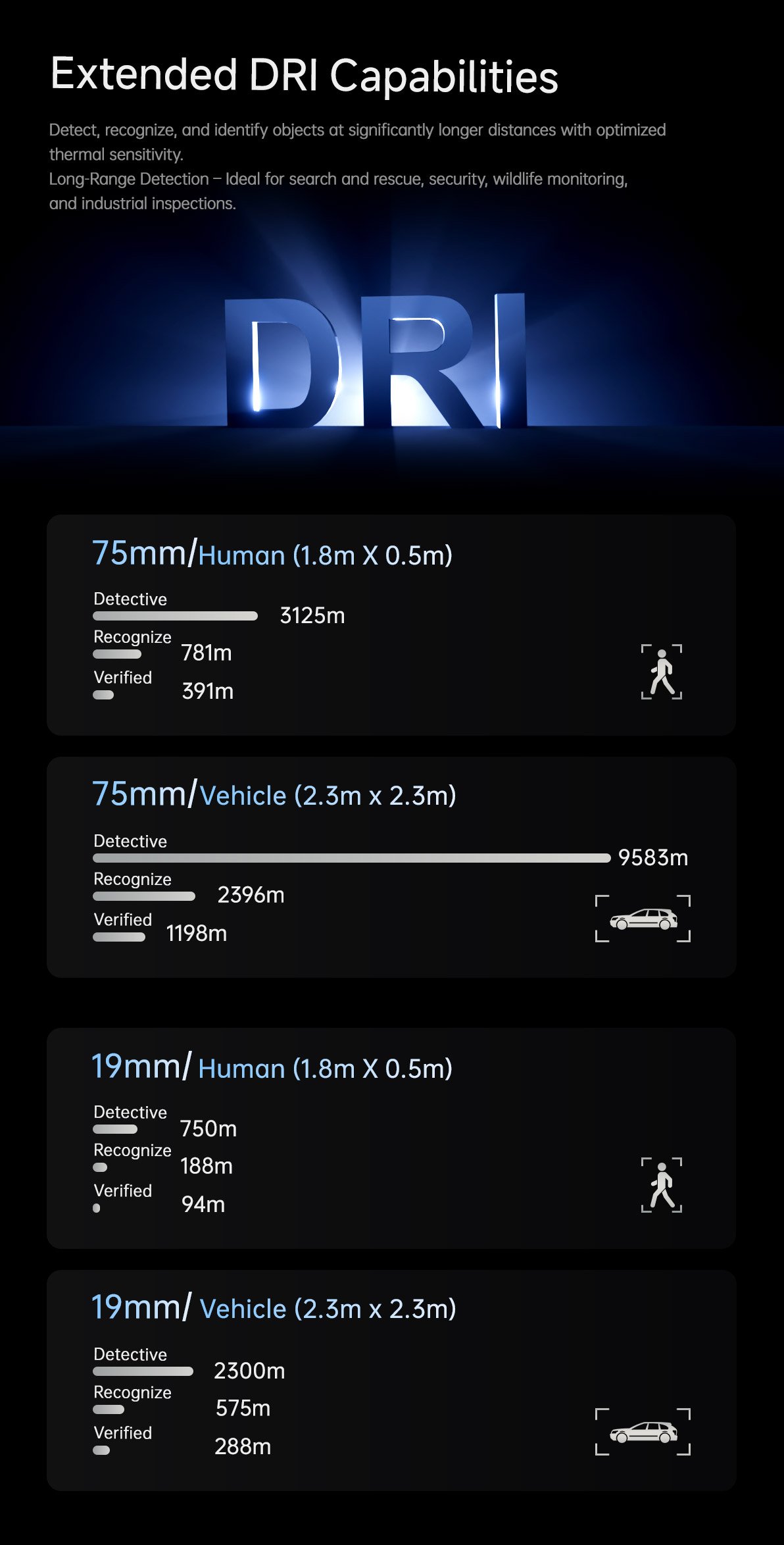 | Detective Distance (Man: 1.8 0.5m) | 750 meters |