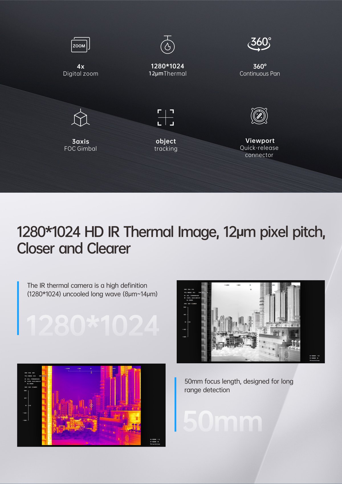 MQIR50T Pro 1280 High definition Infrared Thermal Camera for Long Range Application
