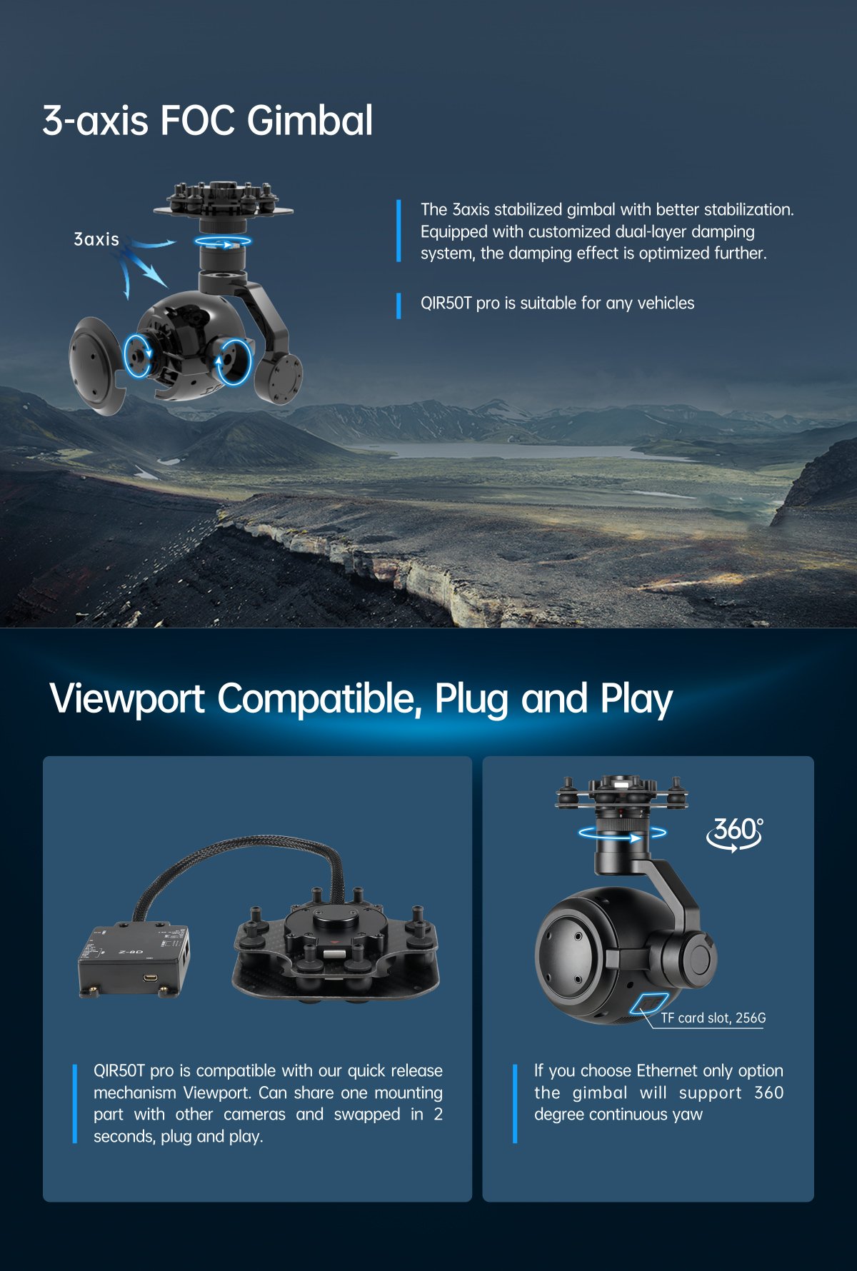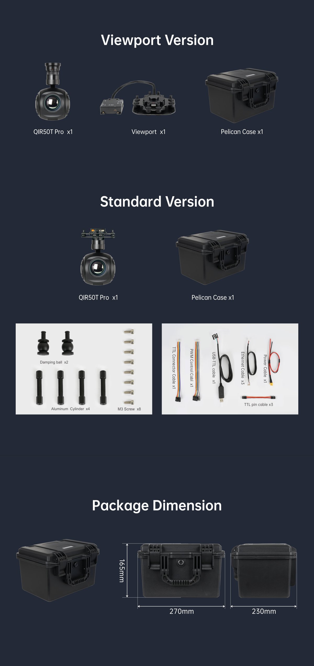 | Accessories | 1pc gimbal camera device, screws, copper cylinders, damping balls, damping boards, 1pc USB to TTL cable / Hight quality plastic box with foam cushion |