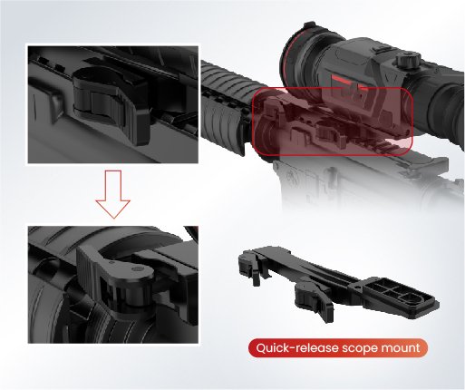 Simply mount the device onto the quick-release scope mount, then tighten the locking lever, and the TR Series can be easily and securely mounted without any other tools.