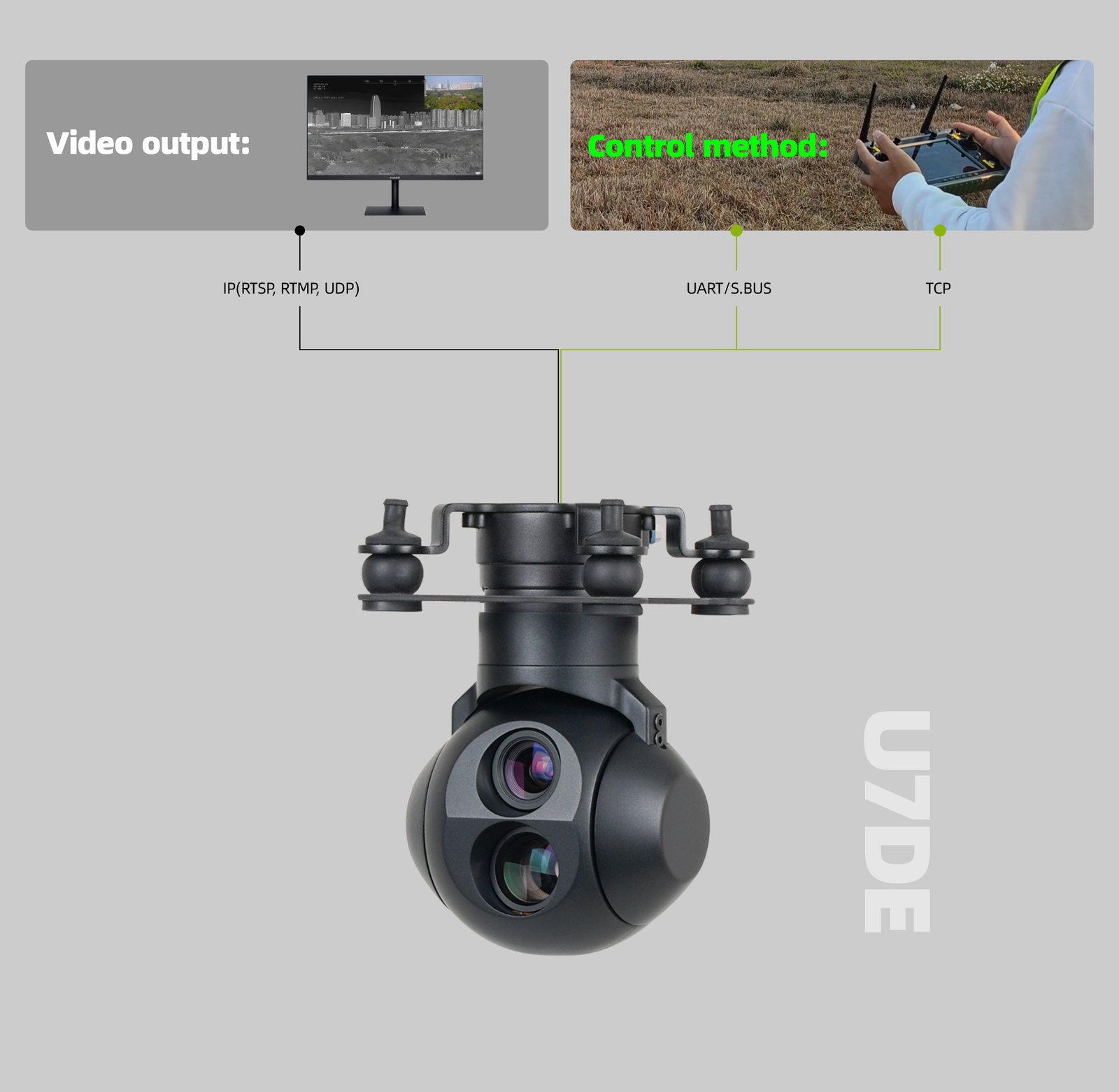 | Accessories | 1pc gimbal camera device, screws, USB to TTL cable / Hight quality plastic box with foam cushion |