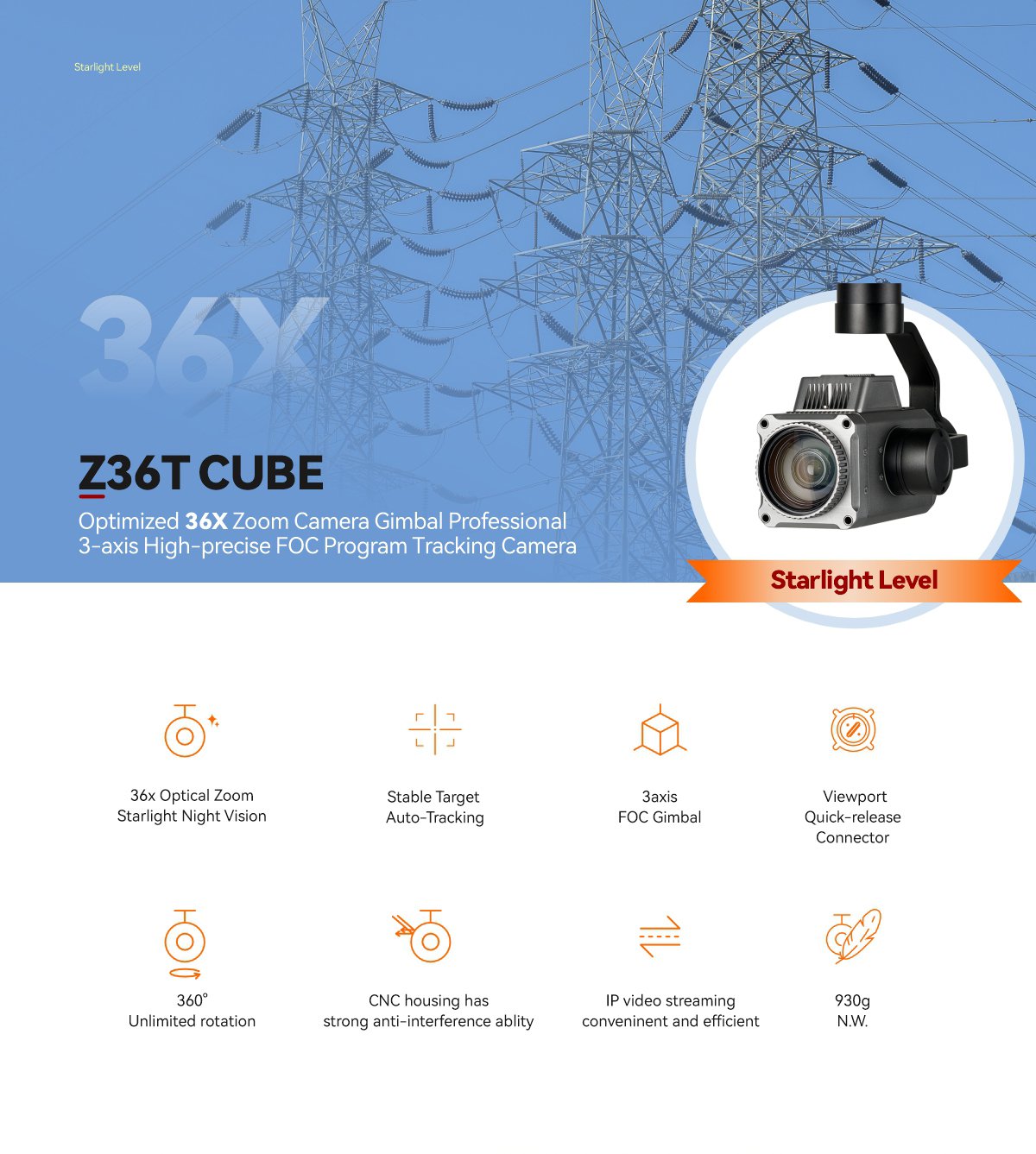 MZ36T Cube Optimized 36times Zoom Camera Gimbal Professional 3-axis High-precise FOC Program tracking camera