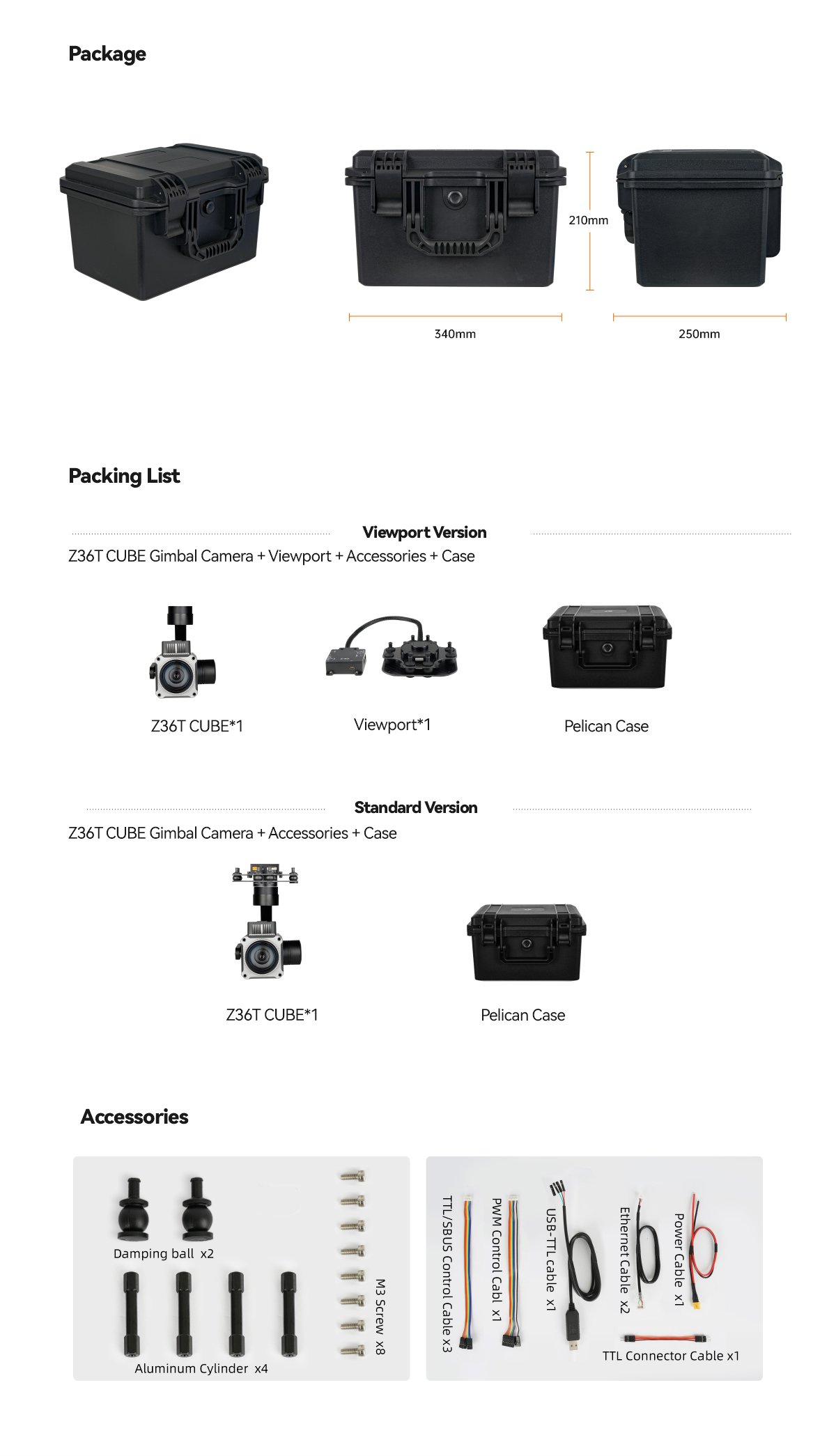 | Accessories | 1pc gimbal camera device, 16pcs screws, 4pcs copper cylinders, 12pcs damping balls, 4pcs damping boards / Hight quality plastic box with foam cushion |